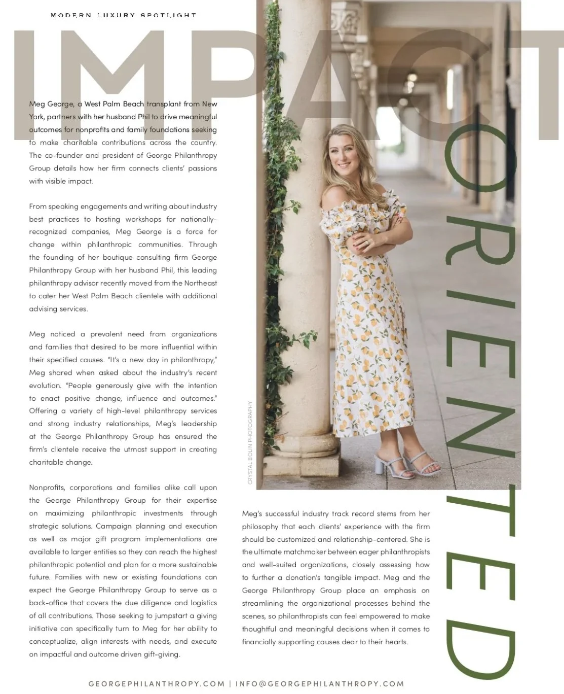 Our Co-founder, Meg George, were featured for a third time in the November 2022 Giving Issue of Modern Luxury Palm Beach Magazine. Click below to receive a digital copy of the magazine!